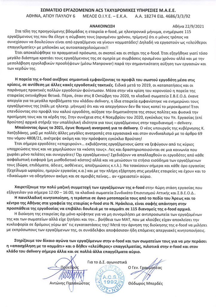 ΑΝΑΚΟΙΝΩΣΕΙΣ ΕΠΙΧΕΙΡΗΣΙΑΚΩΝ ΣΩΜΑΤΕΙΩΝ