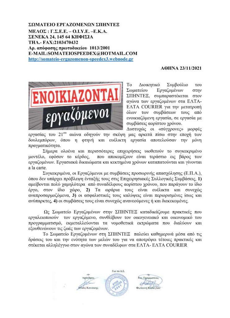 ΑΝΑΚΟΙΝΩΣΕΙΣ ΕΠΙΧΕΙΡΗΣΙΑΚΩΝ ΣΩΜΑΤΕΙΩΝ