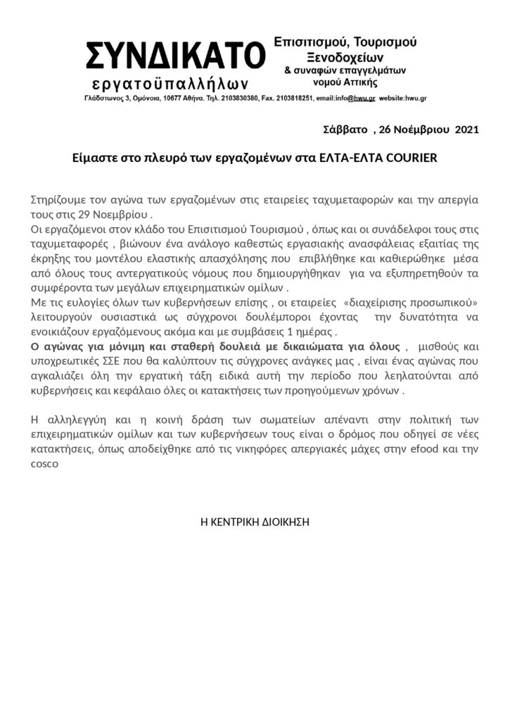 ΑΝΑΚΟΙΝΩΣΗ ΑΛΛΗΛΕΓΓΥΗΣ ΚΛΑΔΙΚΟΥ ΣΩΜΑΤΕΙΟΥ ΕΠΙΣΙΤΙΣΜΟΥ-ΤΟΥΡΙΣΜΟΥ