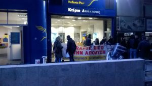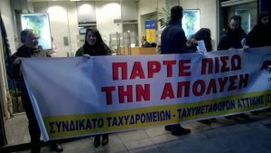 Η παρέμβαση έγινε στο κτίριο της Κεντρικής Διοίκησης των ΕΛΤΑ, Απελλού 1. Καλούμε τα σωματεία των ΕΛΤΑ και Ταχυμεταφορών ΕΛΤΑ, την ΠΟΣΤ να πάρουν θέση. Να καταγγείλουν την απόλυση του συναδέλφου και να συμβάλλουν στην προσπάθεια που γίνεται για ακύρωση της απόλυσης.